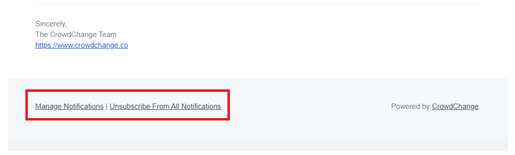 Vous pouvez également accéder à Mes notifications via les liens figurant au bas de nos courriels, comme indiqué ci-dessous :