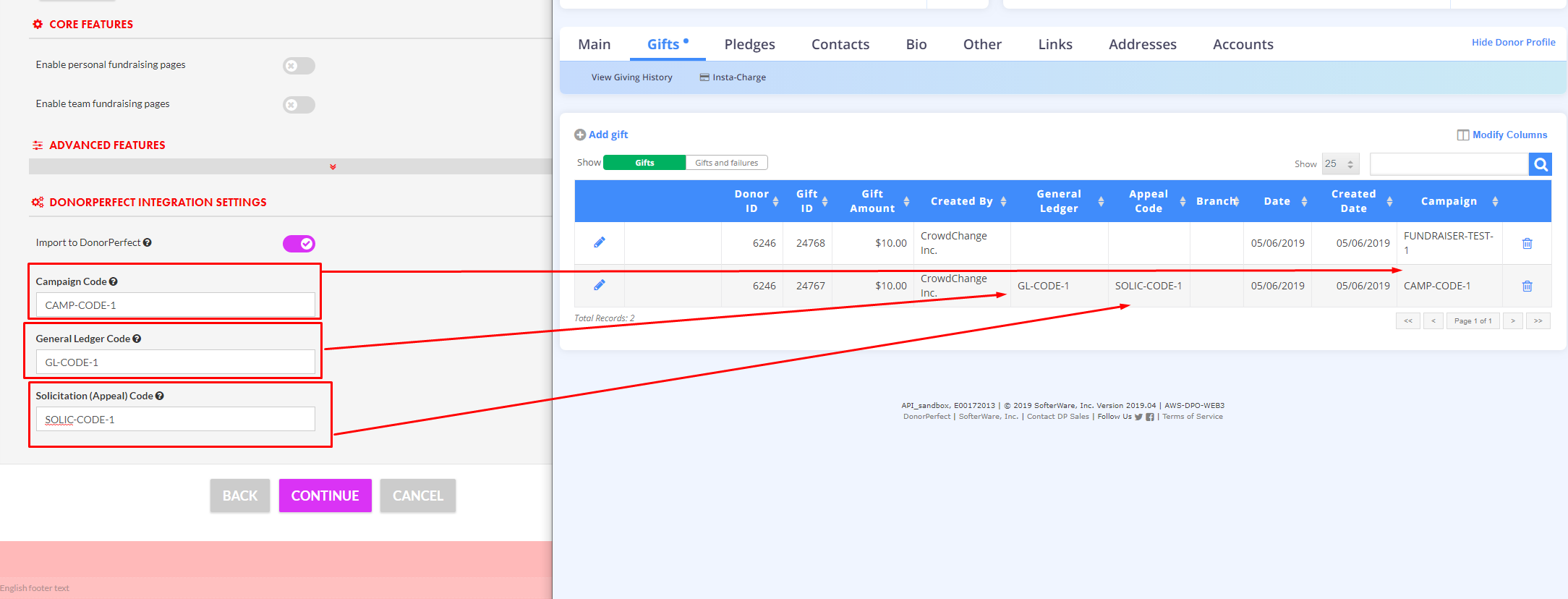 Si l'un de ces codes est défini, il sera vérifié s'il existe déjà dans DonorPerfect lors de l'importation d'une transaction. Si un code existe déjà, il sera utilisé pour importer la transaction avec cette valeur. S'il n'existe pas, un nouveau code sera créé dans DonorPerfect avec le nom de la collecte de fonds comme DESCRIPTION, et le code de la campagne comme CODE.